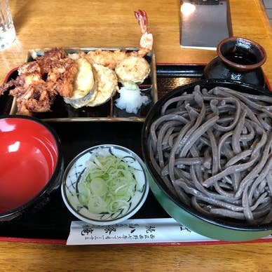 課題のごりごりの田舎そばで超人気なお蕎麦屋さんへ行ってきました。 田舎そばと100円プラスでさらしなそばの2種類のお蕎麦があり温かいか冷たいか、ボリュームと天ぷらを選ぶ感じのメニュー体系になってます。 もちろん田舎そばでおすすめされた天ぷら3種盛り、えび、イカ、ゲソ天のもり蕎麦にしました。 期待通りのごりごりの田舎そばで途中でアゴがやられるコシの強さの香り高いお蕎麦でした。 この手のお蕎麦はアゴがだるくなってもよく噛まないと後から胃もたれしてなしまいます。 私だけ? おつゆもおいしくて私好みでした。 更科そばも食べてみたいですね。 駐車場も2、3台ですが店舗前にあります。 天ぷらもおいしかったなぁ~ #田舎そば #駐車場あり #ごりごり