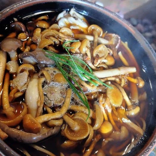 そして、頼んでから25分位で着丼したきのこあんかけ蕎麦は、見るからに美味しそうなオ−ラを発していまして、北海道のきのこの名産地である上川郡愛別町産にこだわった、舞茸,えぞゆきのした,株なめこ,たもぎ茸,霜降りひらたけ,花びら茸,えのき茸,柳松茸,しめじ,以上全9種きのこの中から、今の旬に合う厳選された5種きのこが入った、たまらなく贅沢な一杯のきのこ蕎麦を頂いてこれましたぁ✨✨✨❣