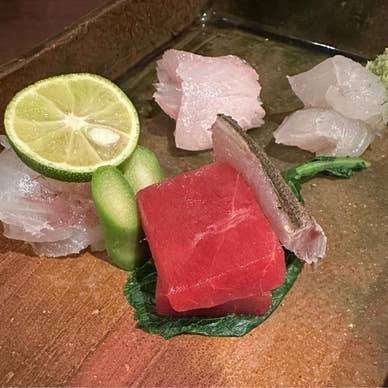 【ふらっと函館】 今回の函館旅の目的二つ目。かの太田和彦翁も訪れた北の地の銘店です。五稜郭のほど近く、静かな住宅街にひっそりと佇みます。 予約時間ちょうどに伺うと一番乗り。カウンターに腰を下ろしまずはサッポロ黒ラベルからはじめます。 『先付』 挨拶代わりの前菜は計6種。真ふぐの梅肉和え、里芋の田楽、塩カマス、マグロの胡麻和え、アスパラと南蛮味噌、どんこ椎茸です。 軽く炙って絶妙なレア感を残したふぐの身。しっとりもっちりしたところに梅肉の心地よい爽やかさ。軽くねっとりした里芋はさっくりした歯ざわりを残したもの。味噌の風味がいいですね。 カマスはすこぶるお酒が進む塩加減。そして濃厚な味わいのマグロはパワフルな胡麻にも負けないほどです。フレッシュなアスパラにはシャープな辛味の南蛮味噌、どんこ椎茸はググっと旨みが詰まっています。 『お造り』 ヒラメ、本マグロ、カマス、マコガレイ、オキアジというラインナップ。合わせるのはやっぱり日本酒ですよね。滋賀の『大治郎』無濾過生原酒をお燗にしてもらいます。 ヒラメはしっとりホリホリ。清々しい味わいの本マグロ。皮目を気持ち炙ったカマスは香ばしさを纏います。マコガレイはシコシコと存在感ある歯応え。オキアジはしっとりみずみずしいです。どのネタも間違いない美味さ。 『ホッキ貝の身としんじょう、蕪を炊いたの』 貝のしんじょうなんて初めてかも。ふんわりとエアリーな口あたり。風味豊かな出汁がたっぷりしゅんでます。身の方はサクサクとした歯ざわり。これはすごい!新鮮さをダイレクトに感じます。蕪はじんわり優しいもの。いいね。 『函館産天然真ふぐの揚げ浸し』 まず油の心地よいコク感あるいい香りが立ち上ります。ほっこほこの大振りな身が二つ。どっしりとした味わいはまるで鶏肉のよう。一見大根に見えた付け合わせは自然薯。シャクシャクと楽しい食感です。 ここで日本酒を埼玉神亀は『真穂人』のお燗に。濃醇な味わいがふぐに合います。 『蝦夷鹿肉と米茄子の八丁味噌和え』 とろりとなんとも言えぬ艶めかしさを湛える米茄子に極々レアに仕上がった蝦夷鹿肉が鎮座します。間を取り持つのはコク深い八丁味噌。軽やかな脂感の鹿肉はしっとりと極々柔らか。 『栗と岩手赤鶏の炊き込みご飯』 〆の食事は炊き込みご飯にお味噌汁、お漬けものです。米の炊き加減が絶妙。栗のナチュラルな甘みと風味、鶏肉の旨み、紫蘇の爽やかさが一体となった味わい。お味噌汁には昆布と乾物系の旨み。お漬けもののみずみずしいフレッシュ感もたまりません。最後のお酒は愛媛の『石鎚』のお燗です。 2時間ほどの珠玉のとき。細やかに世話を焼いてもらい心地よく食事を楽しめました。帰りにご主人とご挨拶。再訪を約束しておいとまします。 函館に来たら必ず行きたいお店。 ごちそうさまでした! #酒場 #旅グルメ