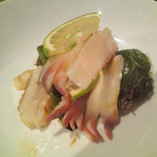 【ふらっと函館】 今回の函館旅の目的二つ目。かの太田和彦翁も訪れた北の地の銘店です。五稜郭のほど近く、静かな住宅街にひっそりと佇みます。 予約時間ちょうどに伺うと一番乗り。カウンターに腰を下ろしまずはサッポロ黒ラベルからはじめます。 『先付』 挨拶代わりの前菜は計6種。真ふぐの梅肉和え、里芋の田楽、塩カマス、マグロの胡麻和え、アスパラと南蛮味噌、どんこ椎茸です。 軽く炙って絶妙なレア感を残したふぐの身。しっとりもっちりしたところに梅肉の心地よい爽やかさ。軽くねっとりした里芋はさっくりした歯ざわりを残したもの。味噌の風味がいいですね。 カマスはすこぶるお酒が進む塩加減。そして濃厚な味わいのマグロはパワフルな胡麻にも負けないほどです。フレッシュなアスパラにはシャープな辛味の南蛮味噌、どんこ椎茸はググっと旨みが詰まっています。 『お造り』 ヒラメ、本マグロ、カマス、マコガレイ、オキアジというラインナップ。合わせるのはやっぱり日本酒ですよね。滋賀の『大治郎』無濾過生原酒をお燗にしてもらいます。 ヒラメはしっとりホリホリ。清々しい味わいの本マグロ。皮目を気持ち炙ったカマスは香ばしさを纏います。マコガレイはシコシコと存在感ある歯応え。オキアジはしっとりみずみずしいです。どのネタも間違いない美味さ。 『ホッキ貝の身としんじょう、蕪を炊いたの』 貝のしんじょうなんて初めてかも。ふんわりとエアリーな口あたり。風味豊かな出汁がたっぷりしゅんでます。身の方はサクサクとした歯ざわり。これはすごい!新鮮さをダイレクトに感じます。蕪はじんわり優しいもの。いいね。 『函館産天然真ふぐの揚げ浸し』 まず油の心地よいコク感あるいい香りが立ち上ります。ほっこほこの大振りな身が二つ。どっしりとした味わいはまるで鶏肉のよう。一見大根に見えた付け合わせは自然薯。シャクシャクと楽しい食感です。 ここで日本酒を埼玉神亀は『真穂人』のお燗に。濃醇な味わいがふぐに合います。 『蝦夷鹿肉と米茄子の八丁味噌和え』 とろりとなんとも言えぬ艶めかしさを湛える米茄子に極々レアに仕上がった蝦夷鹿肉が鎮座します。間を取り持つのはコク深い八丁味噌。軽やかな脂感の鹿肉はしっとりと極々柔らか。 『栗と岩手赤鶏の炊き込みご飯』 〆の食事は炊き込みご飯にお味噌汁、お漬けものです。米の炊き加減が絶妙。栗のナチュラルな甘みと風味、鶏肉の旨み、紫蘇の爽やかさが一体となった味わい。お味噌汁には昆布と乾物系の旨み。お漬けもののみずみずしいフレッシュ感もたまりません。最後のお酒は愛媛の『石鎚』のお燗です。 2時間ほどの珠玉のとき。細やかに世話を焼いてもらい心地よく食事を楽しめました。帰りにご主人とご挨拶。再訪を約束しておいとまします。 函館に来たら必ず行きたいお店。 ごちそうさまでした! #酒場 #旅グルメ