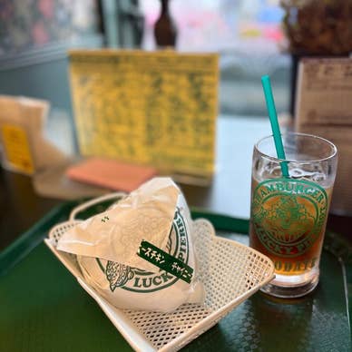 行こうと思ってた市場の飯屋がお休みで、他の店で海鮮丼の気分でもなく、向かいにあるラッキーピエロでモーニング。チャイチキ竹(目玉焼き入り)にアイス烏龍茶。注文待ちの用紙に着席したテーブル番号書いてカウンターに提出しておくと席まで運んでくれる。しばらくしてチャイチキ到着。こんなデカかったっけ?ボリュームある。目玉焼き挟まってさらに厚みが。包み紙もデカいので手を汚さずに食べられる。甘辛チキンにマヨがいい働き。うまい。烏龍茶も濃い味でうまい。