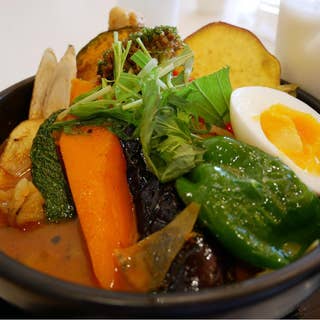 仕事が終わり、昼メシ処を探しながら車で移動していると『道の駅 サーモンパーク』なる控えめな看板を発見。 イオンへ何となく行こうかというのを急遽、変更!! ─=≡Σ((( つ ̄(工) ̄)つ このスープカレー屋さんの他、らーめん屋さん、ピザ屋さん、豚丼屋さんもあった中で、どうしても鰰が1匹丸々乗ったスープカレーが気になってそれを注文。 スープがトリや、エビ、サケで出汁を取ったモノがあり、せっかくなのでサーモンパークに掛けてサケ出汁のスープの中辛にしてみた。 しばらくして呼ばれてカウンターに取りに行くとスゴイインパクト!! Σ( ̄。 ̄ノ)ノ まずは鰰を頭からガブリ! サクサクしていて旨い! そして食べられた本体を見るとこれまたスゴイ!! プチプチした卵がこれでもか!詰まっている! そしてこれも食べると旨い! ( ̄▽ ̄) ムシャムシャ、プチプチ一気に半分ほど食べてしまった。 そうそうこれはスープカレーだった…と思い出してスープを啜る。 辛い物弱者の私でも美味しく食べられる良い感じの辛さ…、いやもう少し辛くても良かったかも。 ( ̄▽ ̄) で、スープをゆく見ると蓴菜(じゅんさい)も浮かんでいて、それとスープを掬って、啜る。 カレーにヌルヌルが合わさってなかなかに面白い。 出汁のサケは正直よく分からなかったけど、底に溜まった一番濃い〜ところを飲んだ時、鮭というよりは海老な感じがしました。 他にも肉がたくさん乗ったものもあり、東京にもある様なので他の店舗にも行ってみよう〜っと。 ─=≡Σ((( つ ̄(工) ̄)つ