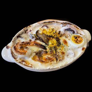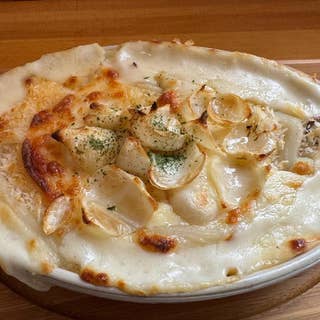 観光地・青い池からも近い林の中に建つグラタン専門店。開店直後からお客さんが訪れる、隠れ家的な雰囲気が魅力です。靴を脱いで上がる店内で、券売機で注文。窓辺からは緑豊かな裏庭や可愛らしい動物たちの姿を眺めながら、心地よく過ごせます。グラタンはチキンやシーフードのマカロニグラタンに好みのトッピングを追加でき、チーズはなめらかで繊細な風味。付け合わせのコールスローやゼリーも優しい味わいです。天気の良い日はテラス席での食事もおすすめ。自然を感じながら、ゆったりとした時間を楽しめます。