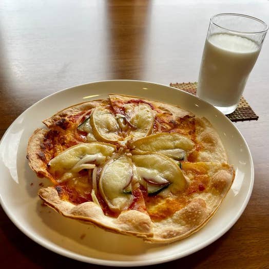 阿寒ポークのトマトベースのパスタ、サラダ、