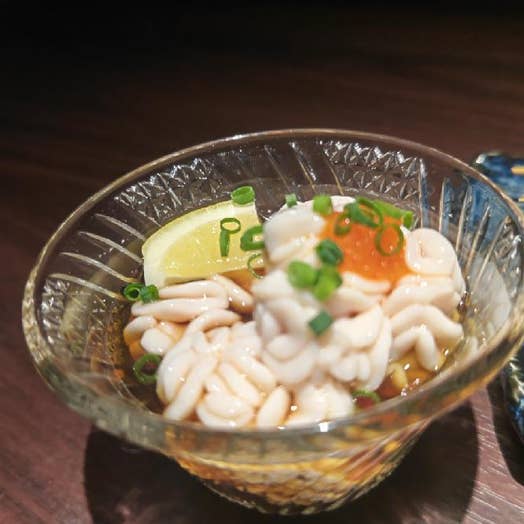 こ、れ、が、衝撃の美味さ。冷えていてコリコリした食感に味噌・鰹節、たぶん梅干などが合えてあってサッパリしていてお酒の友、ごはんの友です。