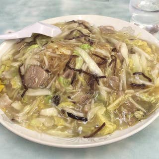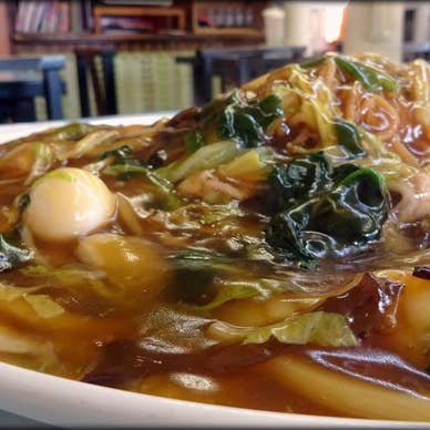 麺の量が選べるあんかけ焼きそばのお店。麺は0.5玉から2玉まで注文できますが、不思議なことにボリュームが減っても、餡のたっぷり感はそのまま。麺を少なめにしてご飯と一緒に餡かけ丼のように楽しむこともでき、餡好きにはたまらない一軒です。焼きそばメニューのみという潔さで、餡の味わいを思う存分堪能できます。