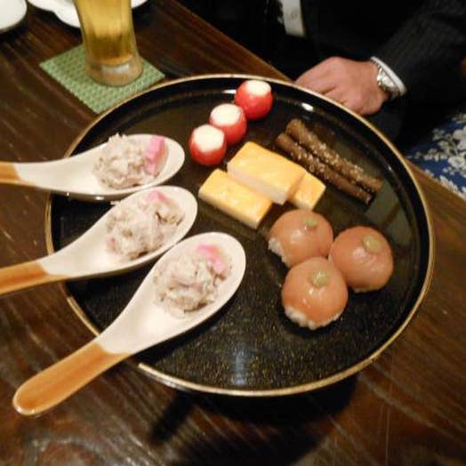 鮪~サーモン~たこ~桜タイ~カンパチ~が盛られてあってビールを飲みだからつまみながら美味しい(*´∀`)♪❤✨