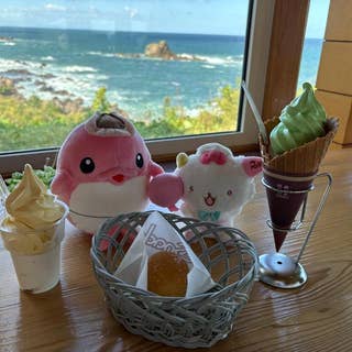 【青森旅行⑩タクシー運転手さんおすすめのソフトクリーム屋さん】 マリエントだけ行くつもりでしたが、意外と時間が巻けたので、前日八戸駅〜本八戸駅の方まで乗せてもらったタクシー運転手さんに教えてもらった、ミルク感が強いというソフトクリームを食べに来ました。 ミックスが上下に分かれてるのいうのがありがたい。混ざるの嫌なんだよな・・・。みんなこうであって欲しい。 バナナ&ミルク、メロン&ミルクをいただきました。 ちなみに上下は指定できますよ。 揚げドーナツをおすすめされたので、こちらも購入。 ミルク感強いというより、砂糖の甘みが控えめでサッパリしてる感じかな。牛乳も売って欲しいな〜。 前日楽しんだ、浅虫水族館のここるちゃんと写真撮影をスタート。 葦毛崎展望台、まるでラピュタみたいでした! 強風であまり素敵な写真は撮れませんでしたが笑 私はともかくここるちゃんは可愛く撮れました。
