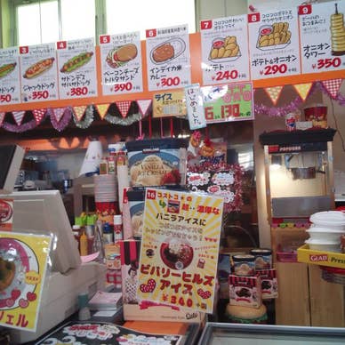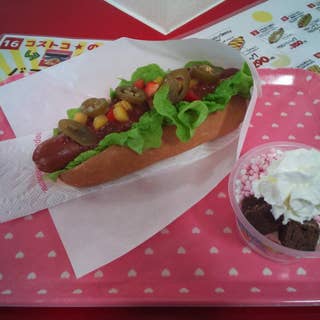 三沢駅から車で数分の場所にあるスカイプラザ三沢へ移動。 近隣に米軍三沢基地が存在する影響で建物内外の店舗や街路はかなりアメリカナイズされてます。 此方ではアメリカ独特の纏め買い文化が根付いてることもあり、商品が単品のみならず箱単位で売られています。 商品を手に取ってよく見ると・・・【Costco】の文字がチラリ。 建物自体は倉庫でも何でもないのにテナントにコストコがあるとは驚きました。 (もちろんコストコの会員ではなくても普通に買物出来ます。) ふと目に留まったのが【Jack&Betty】のカウンター。 こぢんまりとしたフードコートですが、メニューはホットドッグやポテトフライ等色々あります。(インディカ米カレーというのもある!笑) 今回はサドンデスサルサドッグ(380円:税抜き)を注文。 辛い物が大好きなのでメキシコ料理のサルサ(ソース)っぽいネーミングに惹かれたというのもあります。 ついでにビバリーヒルズアイス(340円:税抜き)も注文してみました。 肝心な感想ですが・・・ V字にカットしたドッグパンにリーフレタスとかなり太めのソーセージを挟んでからスパイシーなトマトケチャップが掛けられます。 仕上げは黄色と赤色のパプリカを上から塗し、ハラペーニョが添えられていてビジュアル的にも結構カラフルです。 サドンデスドッグのハラペーニョは注文後に辛さが物足りないと思ったら追加することも出来るので大変良心的です。 ホットドッグが好物の僕にとって期待通りに辛くて美味しい味でした。 一方のビバリーヒルズアイスはトッピングに冷たい粒々が5~6種類あるので、好きな物を選んでからアイスクリームと一緒に掛けてくれます。 僕はストロベリーチーズケーキの粒を選択。ビーズの様に丸みを帯びた細かい粒なので口溶け的に面白かったです。 一緒に添えられている生クリームとチョコレートキューブも豪華さを引き立てているのでミニパフェのような味わい方が出来ると思います。 余談ですが・・・ サドンデスサルサドッグとビバリーヒルズアイスの二つを購入した際の税込金額が【777円】。 会計時にちょっとだけ嬉しくなりました♪ 尚、店内は完全禁煙。紫煙を気にせず食事が出来ます。 写真は4枚UP。 写真1 サドンデスサルサドッグ(380円:税抜き)とビバリーヒルズアイス(340円:税抜き) 写真2 サドンデスサルサドッグは食べ応えがあります。 写真3 ビバリーヒルズアイスは色々入っていて見た目がカップながらも豪華。 写真4 店内