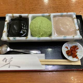 仙台駅からちょっと歩きますが、村上屋餅店さんに徒歩で行きました。美味しいづんだ餅を食べる為には歩きます^_^ 三色餅(づんだ・ごま・くるみ) 890円 持ち帰り づんだ餅 263円×4個 づんだの風味が最高!美味しい!甘さ控えめです。餅もきちんと美味しいお餅。美味しいから嫁さんにお土産で持ち帰り。賞味期限は当日です。 ごま、くるみも上品な甘さ!普通の砂糖じゃないですね。風味も良いし、全部美味しい! づんだ餅ってこんなに美味しかったんですね!感動しました^_^