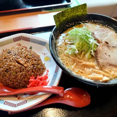 最近店舗が宮城県内でも増えていて 大きな看板なのでけっこう印象に残っていました! 今回はようやくの初訪問でした(^o^) お店はとても広くてキレイ。 各テーブルに電動のオーダーがあります。 メニューは豊富 平日限定のランチセットがお得のよう❗ 名物黒チャーハンのBランチ 803円を食べました❗ 淡麗味噌麺と黒半チャーハンのセット 味噌ラーメンのスープは鶏ガラとげんこつベース。 旨コクの味噌。 大きなチャーシュー2枚にメンマとネギ 海苔とトッピングもなかなか豪華盛り 黒チャーハンはちょうど良いパラパラ感で 味もあり美味しかったです(^o^) コスパの良いランチでしたー❗ ごちそうさまでした