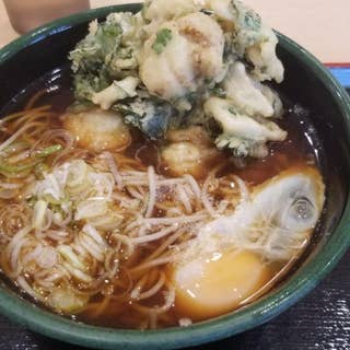 福島県いわき市、県道26号線沿いのゆで太郎です。 早めの夕食で、利用しました。 季節メニューから、ほたて春菊天そばに、生玉子を追加して、¥550+70です。 天ぷらは、固めの揚げ加減、春菊の風味が良い感じでした。