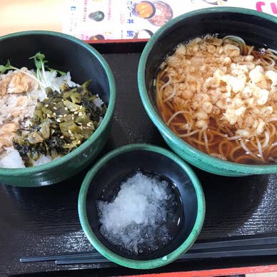 焼きサバごはん朝食セット〜❣️ ゴルフコンペ前の朝ごはん‼️ 鯖のほぐし身があっさりして美味しい〜\(^o^)/ お蕎麦は身体が温まって美味しかったです‼️ 今日もごちそうさまでした♪ #焼きサバごはん #お蕎麦 #駐車場あり