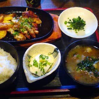 駅からバスですぐの立地にある串焼きBARでは、カウンター席から厨房の様子を眺めつつ調理が楽しめます。定番の生姜焼き定食は、注文後お肉を焼き始めてくれるため、食欲をそそる香りとともに出来立てを堪能できます。付け合わせには冷奴やお新香が付き、しっかりとした食事が楽しめます。タレがご飯によく合い、心地よい雰囲気も魅力のランチスポットです。