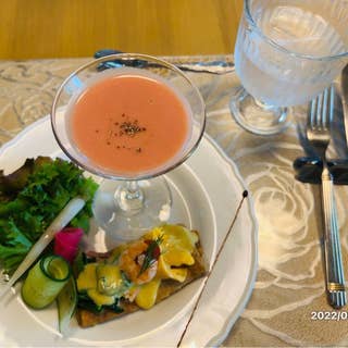 さまざまなメニューを少しずつ楽しめるランチコースが自慢のお店。前菜からスープ、日替わりメインにデザートのシフォンケーキ、スコーンやミニサンドもついて、最後まで美味しさが続きます。ドリンクもセットで、毎回訪れるたびに新しい味に出会えるのが魅力です。特にバラの季節は美しい景色を眺めながら食事ができ、より一層特別なひとときを過ごせます。