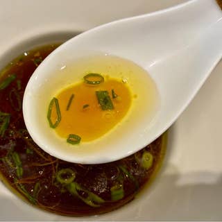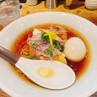 カウンター席のみの落ち着いた店内は清潔感があり、週末やランチタイムには常に行列ができるほどの注目度。主力のラーメンは、鶏と水で丁寧に引き出したクリアなスープと、もちっとした細麺の組み合わせ。トッピングや具材も一品料理のように丁寧に味付けされ、それぞれが高い完成度です。また、昆布水に浸った麺や、鮟肝や紅ズワイガニ、ジェノベーゼなど趣向を凝らした和え玉も評判で、単品の主役級として味わえます。途中でレモン酢や胡椒などで味変するスタイルも新鮮。美しい盛り付けとスタッフの気持ちよい接客も相まって、一杯をじっくりと楽しめる一軒です。
