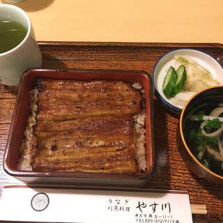 お昼時に伺いうな重(並)を注文。注文後じっくりと丁寧に独自の調理法で焼いてくれるので、出来立てふっくらのうなぎを味わえます。重箱の蓋を開けると香ばしい香りが漂ってきて食欲そそられます。 タレは甘過ぎず濃くなく絶妙で超美味しいです!ご飯は大盛りをお勧めします! 牛久市で46年続く、地元民から愛された老舗のうなぎ専門店で、店内は昔ながらの雰囲気あるお店で、テーブル席と座敷に分かれています。 場所は牛久駅から徒歩10分程度ですが、向かいの駐車場(1〜8)もあるので地元の方は車がお勧めですかね。 店員さんも愛想良く、飲み物も注いでくれたりと気遣いもありサービスは好印象でした! 最高に美味しいうなぎを食べるならやす川さんをお勧めです!