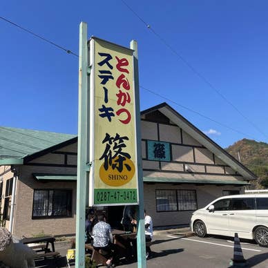 鬼怒川ライン下りを終え鬼怒川駅でSLの方向を変える転車台を見学。 そして家に帰る前に夕食を。 私は2度ほど行ったことがある 篠さんへ ここは人気店で早めに行かないと待つことになります。 17時開店で15分前に到着。 1番乗りでした。その後開店までで7組20名以上いましたね。 17時にオープン。先頭なので奥のテーブルから案内されます。 まずはセルフで。さて何を食べましょうか? 2度来たときは平日のランチで仕事中と言うのもありニンニク系は食べられませんでした。 私は 大判ニンニク焼1,900円+チーズトッピング50円+ライス大盛100円 嫁は 大判ロースカツ1,800円 すぐにサラダが出てきます。 自家製ドレッシング美味しいです。 そこから25分ほどで大判とんかつ登場! 入店は1番でしたがメニュー選びで悩んでしまい4番目くらいの注文となってしまったからです。 その1分後に私の登場です。 ジュージューとニンニクタレとチーズの焼けた匂いがたまりまセブン。 厚みのある豚肉で脂身が美味しいです。 ニンニクタレが美味くてご飯が進みます。 とんかつも4切れもらいました。やはり脂身が美味しいです。 エビフライも食べてみたいな。 ハンバーグも。 お腹いっぱいになり近くの温泉に入って帰宅いたしました。 23/09/02 土曜日の夜 #美味いポークソテー