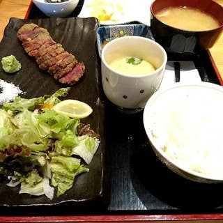 この日のランチは何だか(^з^)-☆閃いて…(笑笑) 一年数ヶ月振りの再訪で此方のお店へ伺いました。 メニューは以前に来た時よりも増えた様な気が… その中から牛レアカツ定食をチョイス… 三種類の薬味(塩・ワサビ・ポン酢)で頂きましたが何れの薬味もレアカツに合ういい仕事をしてて美味かったですね…(^q^) ご飯の大盛お代わりもOKだしオープンから先着30名迄なら茶碗蒸しとデザートがサービスで付くんで早めのランチがお得ですね\(^-^)/