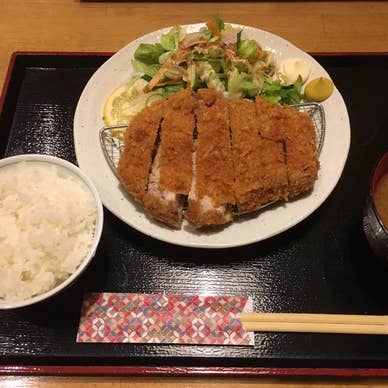 郡司豚とんかつ定食(厚切り)1300円! 肉厚の豚がカラッと揚がって、衣はサクサク、美味です。ごま+α inのソースもまろやかでとんかつに合ってます 22時過ぎまで定食が出るお店は結構貴重。メニューも多いし、また来たい。海無し県栃木のお店ですが、お魚も自信がありそう。