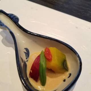 かなり前の訪問ですが 何度か直前に予約が可能か 電話しましたが満席でした。 今回は2週間前に予約しての 「和食 了寛(りょうかん)」 初訪問です。 開店11:30と同時に到着。 入口には予約で満席の 紙が貼ってあります。 注文は当時 「昼の懐石コース華 2,800円」 (先付) 南瓜の白和え (前菜)鰆の味噌幽庵焼、丸十レモン煮 (造り)ひらすずき、本鰹、あおり烏賊 (揚物)牡蠣真丈揚げ、長芋の鶏味噌 (煮物)海老芋と蕪の白味噌煮 (飯物)ちりめん山椒の炊き込みご飯 (甘味)自家製あんみつと珈琲 流石人気店。料理も全部美味しかったが 雰囲気、接客も良かったです。