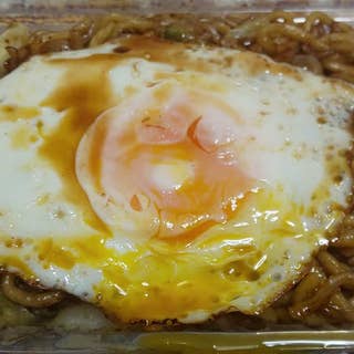 南宇都宮駅近くの焼きそば屋さんに初訪問です。 先週、訪問したら予約で時間かかると 言われたので今日は予約して訪問しました。 購入したのは 「並 500円、目玉焼き 50円(4人前)」 野菜がたっぷりでソースの甘みも良いですね。 挽肉の焼きそばも食感が好きなので気に 入りました。