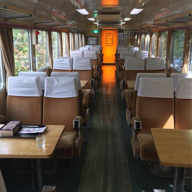 列車内を模したユニークな空間で、まるで旅に出ているような気分を楽しめるレストラン。ひとりで頑張る店主さんが、温かみのある料理を手際よく提供してくれます。落ち着いた時間帯にはさらにゆったりとした雰囲気を味わえそう。鉄道好きはもちろん、非日常の食事体験を求める方にもおすすめです。
