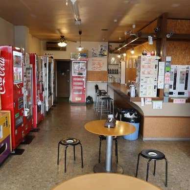 うどんやそば、パンなどの自販機がズラリと並んでいる、昭和な雰囲気のお店