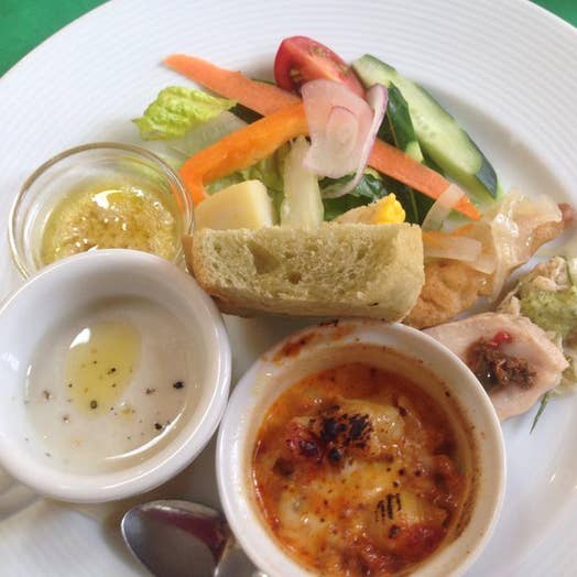 少し塩味がついてるのにサラサラ系ソースを軽くかけて