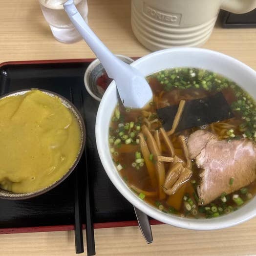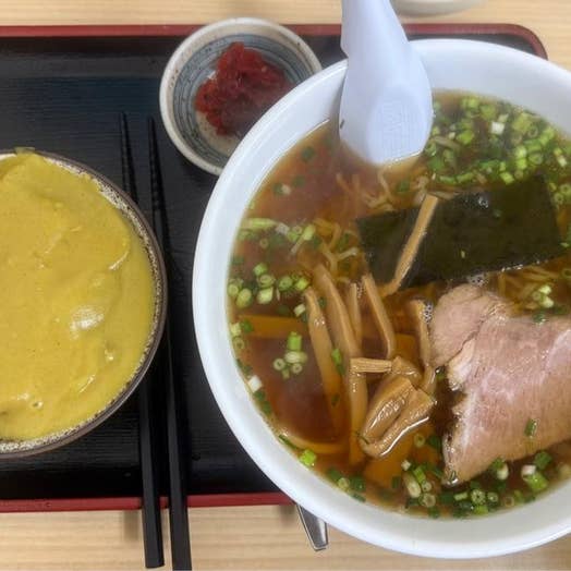 【らーめんかチャーシューめん】仕事で高崎市から伊勢崎市に向かう途中に『手打らーめん 玄』さんにランチで伺いました(^^)新しくR354バイパスができてからは…なかなか通らなくなってしまった伊勢崎街道ですが…ここに来る為に久々に通りました(^^)13時に到着して…ほぼ満席でしたが…カウンターがひとつ空いて…食券を買いすぐに席に通されました(^^)メニューはシンプルで《らーめん(¥1,000)》《らーめん大盛(¥1,200)》《チャーシューめん(¥1,200)》《チャーシューめん大盛(¥1,400)》の4択(^^)あと《餃子3個(¥450)》《餃子5個(¥650)》と《半ライス(¥200)》《ライス(¥250)》とトッピングとドリンク(^^)塩らーめんも味噌らーめんも無い…こういうお店はしょうゆらーめんだけで勝負している感じが好きです(^^)《チャーシューめん》と《餃子3個》をチョイス(^^)手打麺が太くて喉を通る食べ応えがすごく良くて美味しい(^^)スープも洗練されたしょうゆで…あっさりだけど奥深い味わい(^^)漢らしいチャーシューも美味しい(^^)大きな餃子は餡がぎっちり詰まっていて…よもぎ?パクチー?みたいな風味を感じる薬膳っぽい餃子です(^^)やはりしょうゆらーめんだけで勝負しているお店は裏切らないですね(^^) #らーめんかチャーシューめん #手打らーめん玄 #しょうゆらーめんだけで勝負