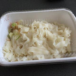 前橋の住宅街に構えるテイクアウト専門のうどん屋【古平製麺】に訪問しました。 引き戸を開けて店内に入ると、平たいオープン冷ケースに、茹で済みの麺,天ぷら,お稲荷さんなどがずらり。店員さんにお願いすると容器に取り分けてもらます。 麺は各180円で下記5種類 ●うどんの細麺 ●うどん太麺のモチモチ ●うどん太麺のツルツル ●きしめん ●お蕎麦 天ぷらも数種類あり小ぶりだが60円とリーズナブル。その他お稲荷やおにぎりなどご飯物まであります。 本日の注文は 麺から、 ●うどん太麺のツルツル ●うどん細麺 天ぷらから、 ●(茹で)玉子天 ●ちくわ天 ●春菊天 サービスで炊き込みご飯のオニギリを頂きました。 ポリ容器に麺と天ぷらが一纏めに入り、蓋の上にお箸,添付のお汁,おにぎりが置かれ、ポリ袋に入れてもらいテイクアウト。 麺はモチっとしたライトな食感。立ち食いそばよりも早いスピードで出てきて、てんこ盛り約500円。群馬の小麦文化は奥が深い。