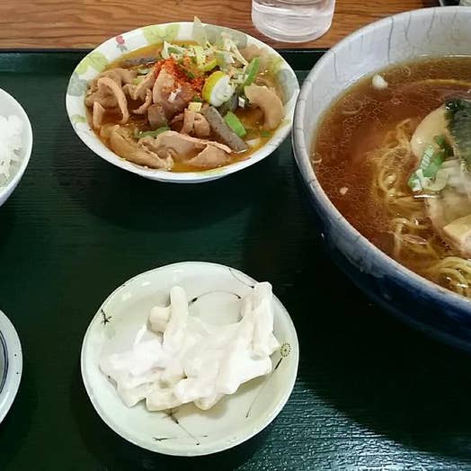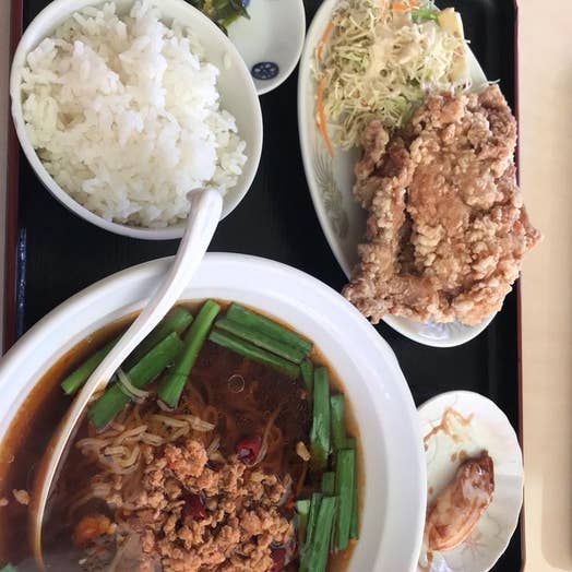 旦那は青椒肉絲定食。定食にはラーメンがついてきて、台湾ラーメン、豚骨、醤油、塩が選べます。