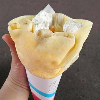 噂のクレープ屋さんへ行ってみた 12時には1人並んでた 13時には8人程‥ 13時30開店時には後ろに10人ほど 14時回った頃には後ろに40人ほどいた 凄い人気店 整理券ゲットし、メニューを決める チョコパフェクレープ630円にした これが凄い! クレープというより花束 ズシリと重みがある 薄皮は既に焼けてありホイップのせる所から始まる ご覧の通り凄い盛り 食べるのも必死だった 作る人も食べる人も必死だ 正直これ食べちゃったら他のを食べられない! そんな一品だった #思った以上に凄い量 #甘くて美味しかった #ズシリとくる重さ #上持たないと大変な事に!