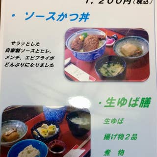 大通り沿いだけれど、時の鐘から少し離れているからか空いていました。 ソースかつ丼、ヒレ・エビ・メンチがのっていて、あっさり目なソースで食べやすく美味しくいただきました(๑˃̵ᴗ˂̵)小鉢の煮物もお味噌汁も美味しかったです!