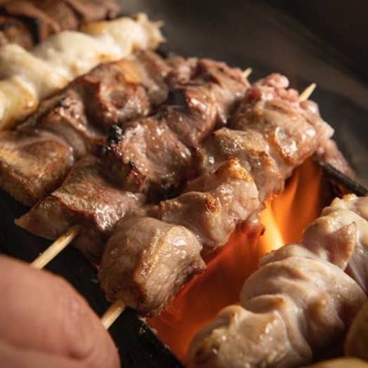 ボリューミーな鶏肉を目の前で大きなハサミで食べやすいサイズにカットしてくれます。香ばしい香りが漂い、皮部分はパリッと、身はプリッとしていてタレもスパイスがかっていてめちゃくちゃ美味しいです。おにぎりがまた可愛らしく相性バッチリ!提供までに時間はかかりますが、初回オーダー時に注文必須です!