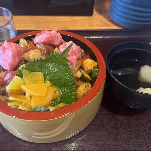 表側では鮮魚やテイクアウトの丼などを販売、左側の通路を入っていくと座って呑める店舗がっ‼️