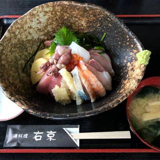 土曜日のランチに家族で訪問しました。 ランチの海鮮丼が美味しいと評判の居酒屋さん「右京」。 春日部で愛されて続けていた人気「右京」がこの地に移転してきました。 では娘とママはその「海鮮丼」を。 この「海鮮丼」は大きな器にたっぷりの具材で供されます。 厚く切られた刺身が10種類以上も並んでいます。 その具材の鮮度や豊富さに大満足です。 酢飯の具合も程よく、しかもその量は1.5合はありそうです。 ボリュームがあってCPの高さが抜群なので、お客さんの大部分がこの「海鮮丼」を食べています。 また、「味噌汁」は魚で出汁を摂っているようですがそれほど魚臭くもなく、これも美味しいです。 一方、自分は「メンチとアジフライ定食」を。 軽くサクッと揚げられている印象ですが、「メンチ」は大変ジューシーで、肉汁が溢れます。 「アジフライ」も大ぶりで身は厚く、食感もホクホクとしていて、大変美味しいし食べ応えがありました。 付け合わせのキャベツの切り方が雑っぽいですがそれは玉に瑕。 なお、店名の「六本木」とはこの店舗のオーナーのこだわりで入れて欲しいとオーダーがあったためとのこと。 「Ⅲ」とは創業地の春日部、支店の藤沢に続いた3店舗目だからとのこと。 店内はパブのようですが、春日部時代と同じように居酒屋の形で営業しています。 パブと間違えて入店してくるお客さんもいるとのこと。