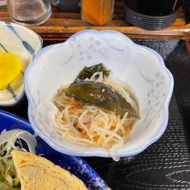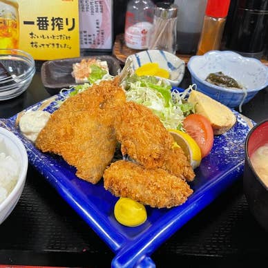 2025年1月20日(月)に居酒屋・食堂 なごみをランチで訪れました。 大和田の人気居酒屋で定食メニューも多いです。 お店の造りはカウンター席と小上がりがあります。 客層は老若男女幅広く、常連客も多いです。 店内ではテレビがつけられていました。 カウンター席に着くと熱い緑茶とおしぼりが出されました。 お店の人の明るくにこやかな接客も良かったです。 かきフライ定食を食しました。 税込1100円でした。 かきフライ3個にアジフライ、サラダ、玉子焼き、ご飯、味噌汁、冷奴、小鉢、沢庵漬け、デザートのコーヒーゼリー、食後のドリンクがつきました。 かきフライは、衣がサクサクと軽く身はジューシーで牡蠣の汁が溢れてきます。 アジフライは身がふんわりとして味わいが良いです。 タルタルソースや辛子も美味しさを引き立てます。 サラダはレタス、キャベツの千切りに胡麻ドレッシングがかけられ、トマトが添えられていました。 玉子焼きは、ふんわりとしてほのかな甘味も良いです。 ご飯の炊き具合も良く、食が進みます。 沢庵漬けのコリコリとした食感と甘味も良いです。 味噌汁の具材は油揚げ、ネギ、豆腐、わかめなどで良い出汁が出ています。 小鉢は春雨、わかめ、ニンジンなどを和えたものでピリッと辛い味つけがされていました。 冷奴は、つるりとして鰹節の香ばしさも良いです。 デザートのコーヒーゼリーは、もっちりとしてほのかな甘味とコーヒーの香ばしさが良いです。 食後のドリンクはアイスコーヒーにしました。 香ばしくて苦味が控えめで酸味がなく風味と味わいが良いものでした。 サービス精神が旺盛で気前の良さを感じるお店でした。 大変に美味しかったです。