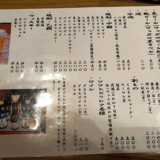 飲み代を除けば1人1,000円程度でビックリ!
