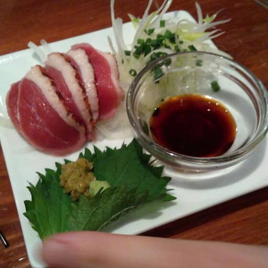赤身、脳天、ハラモのお刺身三種盛りは、どの部位もそれぞれ旨みがギュギュッと凝縮。とろける赤身、じわっと脂の甘みが広がるハラモ、そして脳天のしっとり柔らかい食感にノックアウトです!