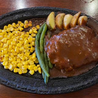 平日ランチ。住宅街の真ん中にある星条旗旗めくアメリカンテイストなレストラン。 ハンバーグやステーキがメイン。サイドメニューはチリビーンズを使ったタコス等の料理もある。 待ちの記帳は店内にあり。 29分待ちで着座。スワンハンバーグ180g 980円とライス240円を注文。水はセルフ。 人手不足により時間がかかるとのこと。 着膳は20分くらい。 ハンバーグはデミグラスソースで付け合わせはポテト、インゲン、コーン。 ご飯は硬い。まあ、味は普通、量はそれほど多いわけではないがごはんお代わり自由など、高校生にはありがたいかも。 アメリカンレストランとしてはあり。 #60