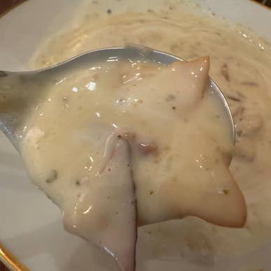 日本一のクラムチャウダー(ご飯入りver.) 千葉県船橋市の船橋駅から徒歩5分ほどのところにあるラーメン屋。 「第一回クラムチャウダー選手権優勝&連覇」「アメリカのクラムチャウダー大会優勝」というクラムチャウダーが食べられるお店。船橋のホンビノス貝を使っている。 クラムチャウダーを食べたいと思ってこの店を見つけ、リストに入れて早数年。夜の営業のみなのでなかなか行けるタイミングがなかったが、今回ここに行くために時間を調整して船橋で開店を待って訪問。 火曜の18:15ごろ着いて先客2組。 クラムチャウダーにご飯が入った望み通りのものがメニューにあるので注文。 10分ほどで着丼。 クラムチャウダーにご飯、ホイップバターのようなものが入っている。 チャウダー自体は思ったよりサラッとしていて、ホイップのない部分から食べてみるとあっさりめ。バターを溶かしながら食べていくことでコクが深まる。 単体で食べるには十分だがご飯に合わせるには少々パンチが弱い。卓上には白胡椒はあるが黒胡椒が欲しくなる。 ラーメンや餃子を食べた後の締めとしての一皿にはぴったり。