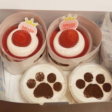 そー言えばパステルのなめらかプリンってその昔に流行ったよなぁ~ なんて思いながら足を止めると思わずにゃんこの足跡に釣られてテイクアウトします。 でも商品名を言うのはあまりにも恥ずかしかったので指を差してお願いします。 (笑) ココアパウダーで足跡を付けられたホイップクリームの下にはなめらかプリンが隠れています。 も~何年ぶりだろか? とろ~りとろけるようななめらかプリンは相変わらず美味しかったです *.♡ ご馳走様でした。 ◆にゃめらかプリン 350円 ◆あまおうストロベリープリン 480円 ◆消費税 #スイーツ男子 #テイクアウト