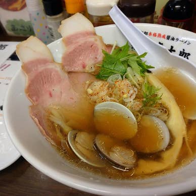 勝田台でへ行くのでランチはどこにしよう、と思い、駅チカで歩き回ってこちらへ初訪問。 ”ハマグリ”の文字に惹かれました(^^♪ 13時過ぎでしたが、ちょうどカウンターが空いていてすぐに案内していただきました。 メニューを見ましたが、ラーメンとサイドメニューのランチセットまではボリューム的に無理そうだったので、予定通りはまぐりそばを注文しました。 メニューの写真通り、はまぐり、メンマ、チャーシューに水菜とネギのトッピング。 七味唐辛子はどうなの?と思ったら、あっさり目なのにコクがある味にぴったりでこれは良かったです。 低温調理で薄切りのチャーシューはスープの味にぴったり。 ハマグリもプリプリで良かった メンマもあっさり目の味で食感も良くバッチリ。 次回は人気らしい豚骨を試してみたいと思いました(^^♪