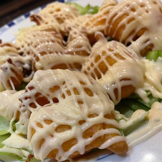 タラモサラダと餃子の皮せんべい。パリパリのせんべいが香ばしくてなかなか美味い◎