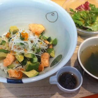 炙りサーモンとアボカド丼が人気の、丼ものがメインのカフェ