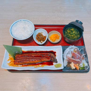 ◆うなぎ蒲焼きとミニカツオのっけ盛り定食 1,749円 ◆イカ入り松前漬け 132円 ※税込 久しぶりの再訪です。 16:00過ぎでお昼ご飯がまだだったのでお腹ペコペコで、何を食べようか考えながらオフィス近くをウロウロしていてこの店がこの時間でも営業しているのを見て即決しました。 メニューは美味しそうなものばかりで迷いましたが、土用の丑の日は翌日でしたが、うなぎにしました。 約5分で料理到着。 値段的に味はあまり期待していませんでしたが、どうしてどうして なかなか美味しいじゃないですか! 練りわさびが添えられているので、うなぎにわさびは初めてでしたが着けてて食べてみると、美味い〜! 山椒がないのでわさびが立派に代役を果たしてくれました。 カツオも薬味がおろし生姜と紅葉おろしも付いて、たたきにはお決まりの玉ねぎスライスと美味しくいただきました。 味噌汁があおさなのも嬉しい♫ 追加した松前漬けも美味しかったです。品名に「イカ入り」が付いていますが、イカが入っていない松前漬けってあるのかな? 昆布のぬめりがもっとあると旨味も増すんだけどなぁ... この店以前は確かランチとディナーの間に休憩時間があったように記憶していたので通し営業になって利用頻度が増えそうです。