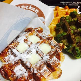 新宿京王百貨店とミロードの間に位置するこちら。 かつてはチケットセンターでした。 マネケンのワッフルです。 *プレーン プレーンが美味しくないと、アレンジものも期待出来ないですよね。 ハチミツとバターの、ふんわりさっくり、こちらの人気ナンバーワン商品。 *6月限定 レアチーズ 生地にもクリームチーズを入れて、トップにも 格子の間に可愛くちょこんと。 レモンの酸味が効いて爽やか。 *期間限定 宇治抹茶 石臼挽きの京都の宇治抹茶使用。 抹茶の香りと心地良い苦味。 パンフに寄ると蜜漬小豆が入ってるらしいけど これは気づかなかった…(・_・; *期間限定 香るりんご カスタードを練り込んだ生地に ふじりんごのダイスカットされたものが 入っていて香りも良いし食感も楽しい。 トースターで2分ほど温めて、 そのあと少し冷ましてから…がお気に入りの食べ方。 マネケンのワッフルはふんわりしていて 周りはそんなに硬くはないですね。 穏やかなさっくり感。(^-^) 5ケから箱に入れてくれます。 手土産にもぴったりですね。 お値段は種類にも寄りますが 5ケ買って¥750くらい。お手頃です♪ #お手頃手土産 #お手頃おやつ #香りの誘惑♡