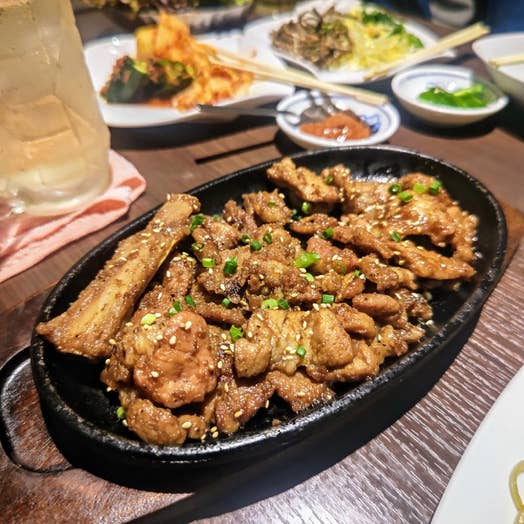 ただ、海鮮チヂミ、外がサクサク中がフワフワでかなり美味しかったのですが思いの外ボリュームがあり(3、4人でシェアできるサイズ感)、