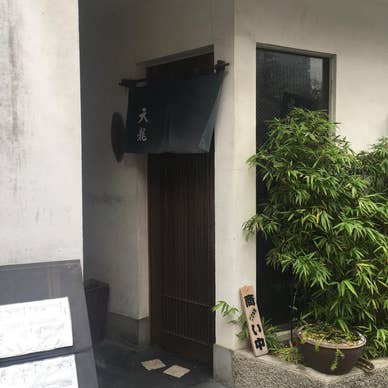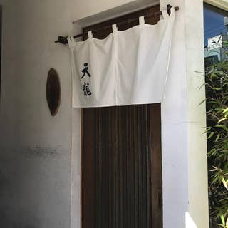 蕎麦かなぁとこちらに。 水天宮の裏の小さなお店です。 店内は仙台箪笥が置かれたり、モダンだったり、よくわかりませんw テーブル席で合計24でしょうか。 腰の曲がった名物お婆さんはいませんね。 13時の入店ですが満席ですね。端っこの2人席にようやく滑り込み。 一回転したばかりのようで、皆さんも未だ出てきて無いですね。これは長期戦覚悟だなっと。 メニューは、かけ、もりが500円からと町の蕎麦屋さんの面目躍如のリーズナブルなお値段。 丼ものも、玉子、たぬき、きつね、かれ、親子、開化、カツ、天丼、カツカレー丼とフルラインナップです。 蕎麦には、半カレー 250円、ライスはサービス。 丼ものには、ミニそば 100円、もり・かけ 300円になってますね。 おかめにしようか、とじにしようか、鳥南ばんにしようか悩みましたが、天ぷらそば 900円にしましょう。 案の定なかなか出てきませんね。 お隣4人の内の男性は、もりに半カレーですかね。半カレー結構な量がありますね。 女性のカレーそばがなかなか出てきませんね。 30分近く待って、天ぷらそばの到着です。 シンプルに、かけ蕎麦の上に、それなりの大きさの海老が2本。 お蕎麦は、香りはほとんどありませんね。二八以上でしょうか。まぁこのお値段ですからね。 ツユは、甘みが薄いやや辛口のツユ。あまりダシは感じません。 海老天は揚げたてなので熱々です。食べ応えもあり美味しいです。 他の昔からのお客さんもお婆さんの事を気にしてましたが、元気ではいるようですが、もうお店に立つのは無理のようです。 町の蕎麦屋さん、出前もやっているようで、それで時間もかかるんですかね、 なんで店名が天龍なんだろう。